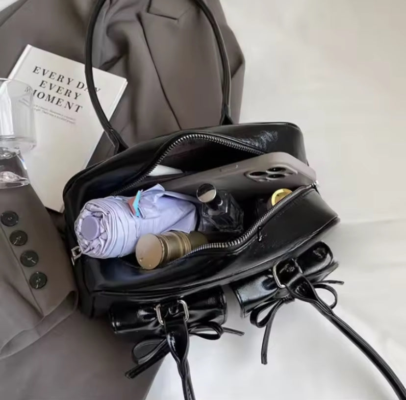 This vintage tote bag is a stylish and functional addition to your wardrobe. The elegant bow detailing on the pockets adds a touch of sophistication, while providing extra storage space for your essentials. Made with high-quality materials, this tote is perfect for everyday use or special occasions. Upgrade your style game with this timeless piece.